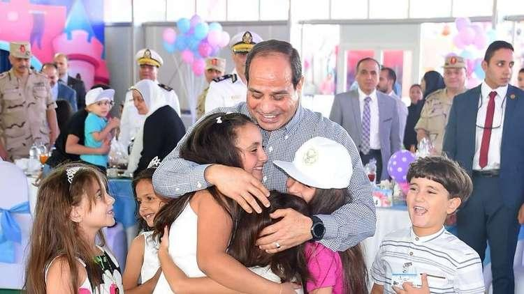 بالصور السيسي يحتفل بعيد الفطر مع أبناء الشهداء نون الإخبارية