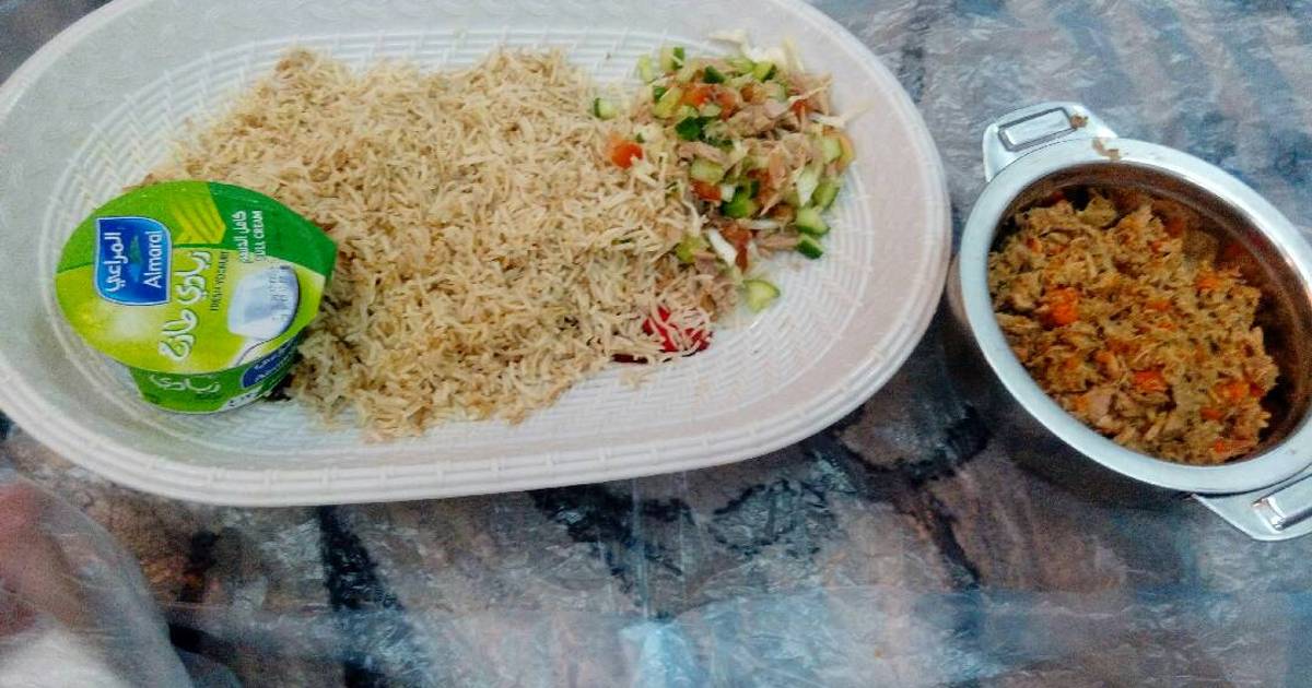 أرز بالبخار مع سلطة بالسمك المشوي بالصور من المهاجر كوكباد