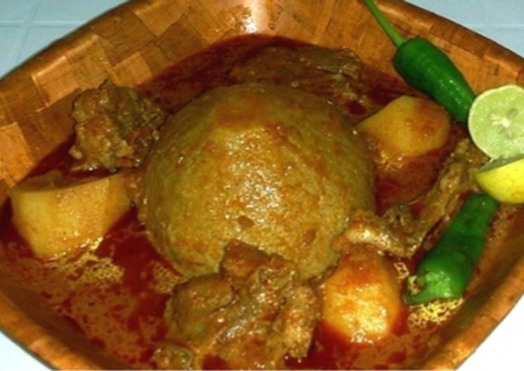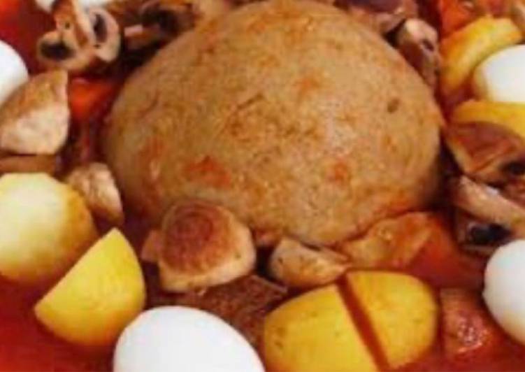 البازين بلحم الخروف و طبيخة البطاطا من مطبخي مطبخ زينب محمد
