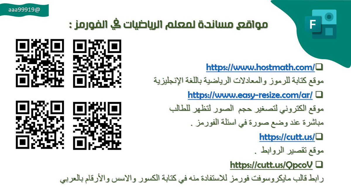 علي عايض القرني On Twitter 1 مدرستي يعاني الكثير من معلمي ومعلمات الرياضيات من بعض الصعوبات عند اعداد اختبار بنماذج مايكروسوفت فورمز منها كتابة الرموز سواء باللغة العربية او اللغة الإنجليزية