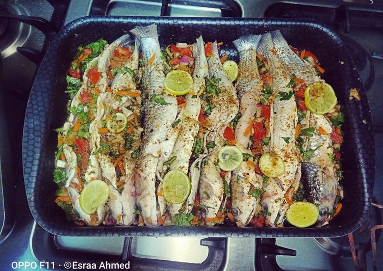 هن طريقة عمل السمك البوري السنجاري في الفرن