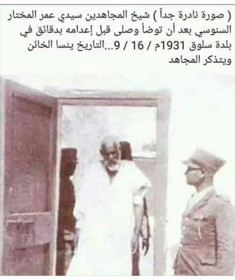 عمر المختار شيخ المجاهدين أسد الصحراء حارب الطلاينة وعمره 53 عاما وأعدموه بعد 20 سنة من قتاله ضدهم وقال عنه عدوه حينما رأيته شاهدت فيه آلاف المرابطين ممن واجهونا اليوم السابع