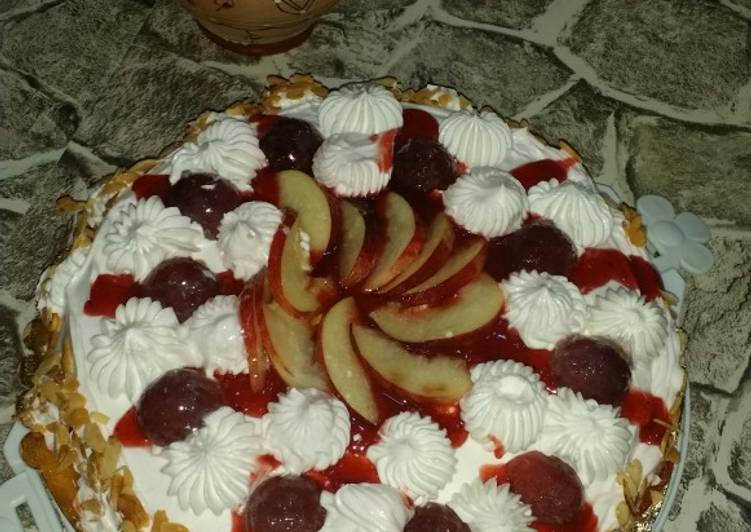 طريقة عمل تورتة سهلة وغير مكلفة بالفواكه أطيب طبخة