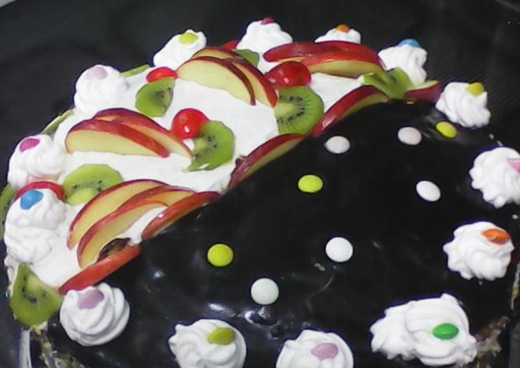طريقة عمل تورتة نص فاكهة ونصف شكولاتة بالصور خطوة خطوة