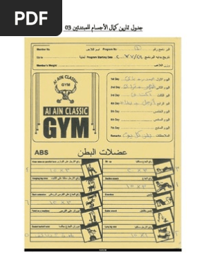 جدول تمارين كمال الاجسام للمبتدئين Pdf صباح كيوت