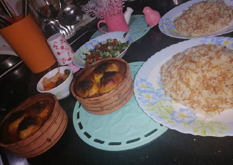 دجاج مشوي بصوص الباربكيو واارز المصري المبهر بالصور من سنه اولى مطبخ كوكباد