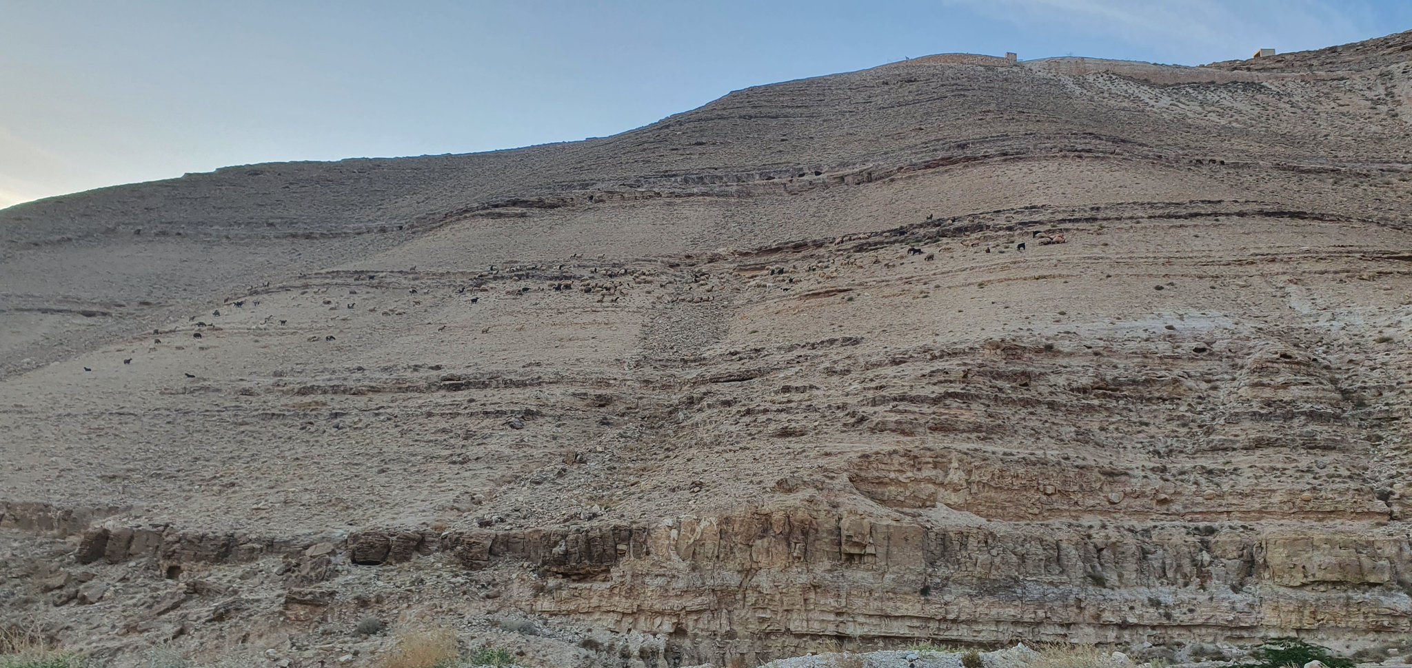 وطنا نيوز قطيع من الاغنام مستمتع في ارض جرداء