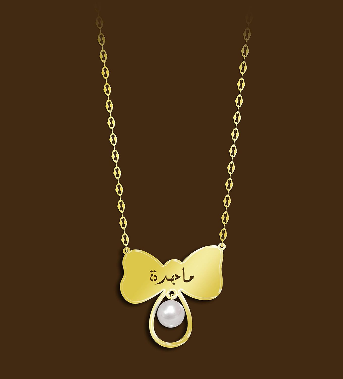 اشتري اونلاين بأفضل الاسعار بالسعودية سوق الان امازون السعودية سلسال مع تعليقة على شكل فراشة ذهب عيار 18 محفور عليها اسم ماجدة