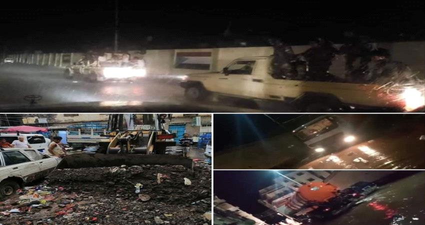 اخبار وتقارير صور تظهر سرعة تحرك سلطات الإدارة لمجابهة اثار السيول بعدن واشادة شعبية