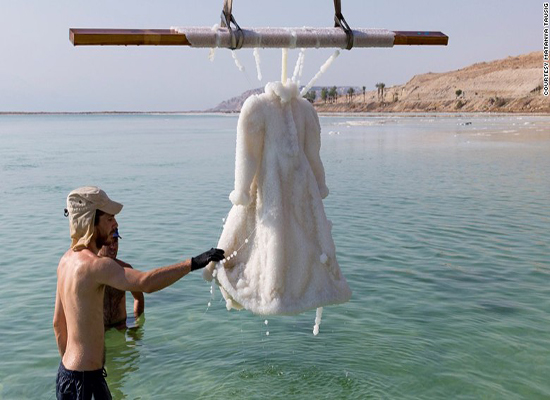 بالصور فنانة تترك فستانها في البحر الميت لعامين كيف أصبح شكله المدينة نيوز