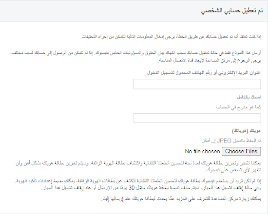 استرجاع حساب الفيس بوك المعطل وتأكيده بهوية