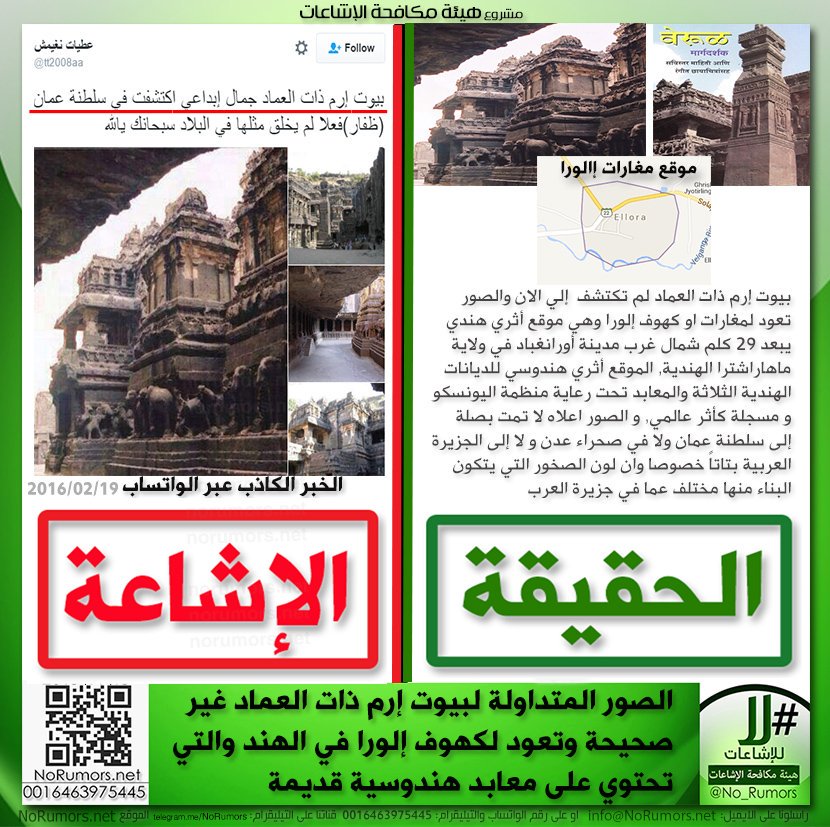 هيئة مكافحة الإشاعات בטוויטר الصور المتداولة لبيوت إرم ذات العماد غير صحيحة وتعود لكهوف إلورا في الهند والتي تحتوي على معابد هندوسية قديمة Https T Co Cvw03ac2o5 Https T Co Thgvywkpea
