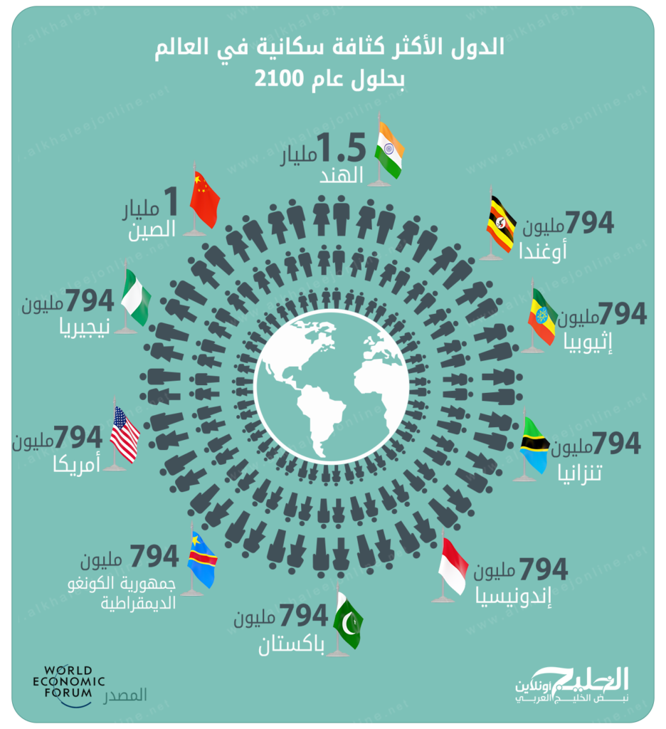 الصورة الدول الأكثر كثافة سكانية في عام 2100 Elmarada