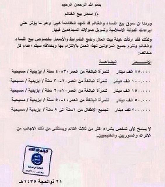 الخارجية الأمريكية En Twitter Rt Sawabcenter في صورة أخرى من صور إهانة المرأة داعش يضع قائمة أسعار للنساء للمتعة والسبي Http T Co X3wc8j7i1m Http T Co Z2ytqzrvn1