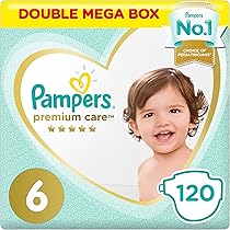 حفاضات بامبرز بريميوم كير مقاس 6 كبير جدا وزن 13 كغم أو أكثر عبوة كبيرة مزدوجة 120 قطعة Amazon Ae