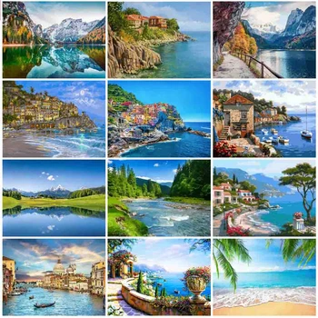 هواكان دهان داي بأرقام رسم بحري على قماش صور حسب الرقم مشهد لوحات مرسومة باليد نهر أطقم ديكور المنزل Leather Bag