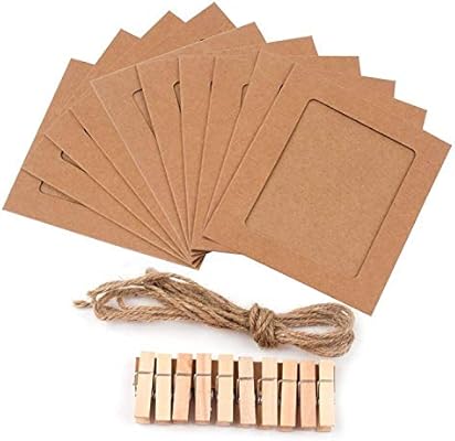 مجموعة براويز ورقيه مع مشابك خشبيه وخيط تعليق البوم صور ديكور حفلات لون بني Amazon Ae
