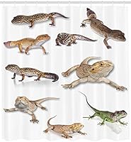 ستارة حمام الزواحف من Ambesonne صورة ملونة لعائلة برص فهد مع صورة زواحف البدائية مطبوعة فنية في الحياة البرية مجموعة من قماش القماش لديكور الحمام مع خطافات قماش 70 Long Amazon Ae