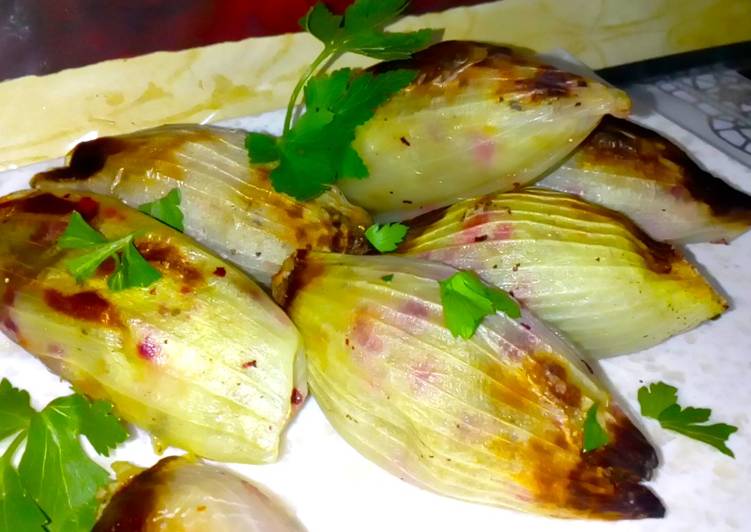 بصل مشوي على الفحم ومحشي بالفريكة واللحم بالصور من اشهى واطيب مع جودي كوكباد