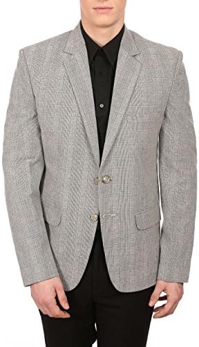 بليزر رجالي من Wintage مصنوع من القطن مطبوع عليه صورة مربعات لجميع المواسم بلون رمادي 40 M Amazon Ae