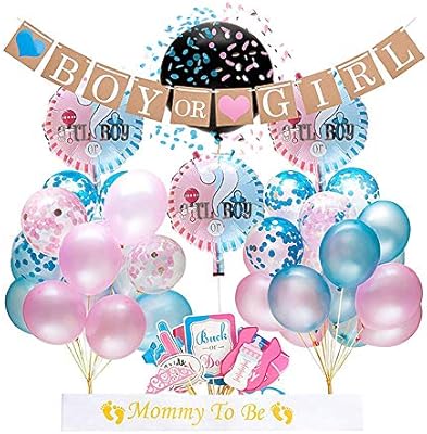 Buy لوازم الجنين تكشف عن الحفلات ومجموعة فتى أو بنت استحمام 64 قطعة بما في ذلك 36 بوصة تكشف بالون بالونات حلويات لافتة صور الدعائم وأكثر كل