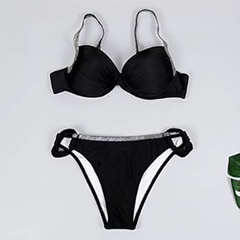 طقم بيكيني بوش اب مبطن للنساء ملابس سباحة من قطعتين بلون موحد للسيدات للاستحمام وللشاطئ وللسباحة M اسود Amazon Ae
