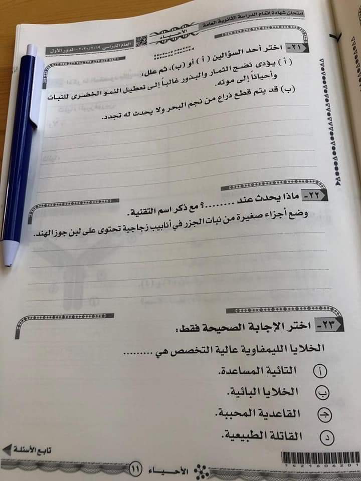 نماذج بوكليت جديدة أحياء الصف الثالث الثانوي بالإجابات 2020