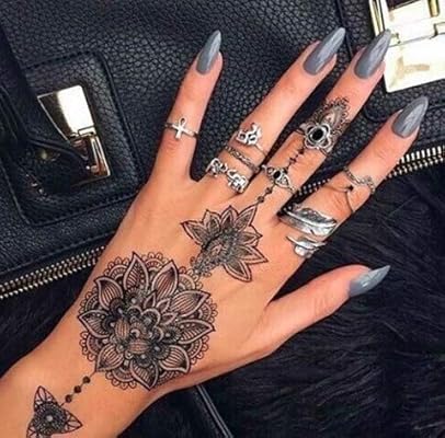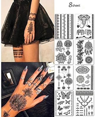 8 ورقات من ملصقات التاتو المؤقت على شكل حنة سوداء ملصقات تاتو الدانتيل المثير للجسم مناسب للسيدات والفتيات فلاش تاتو لحفلات الزفاف Amazon Ae