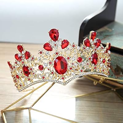 تاج العروس تاج تاج الزفاف أحمر ذهبي اللون مجوهرات شعر الزفاف Amazon Ae