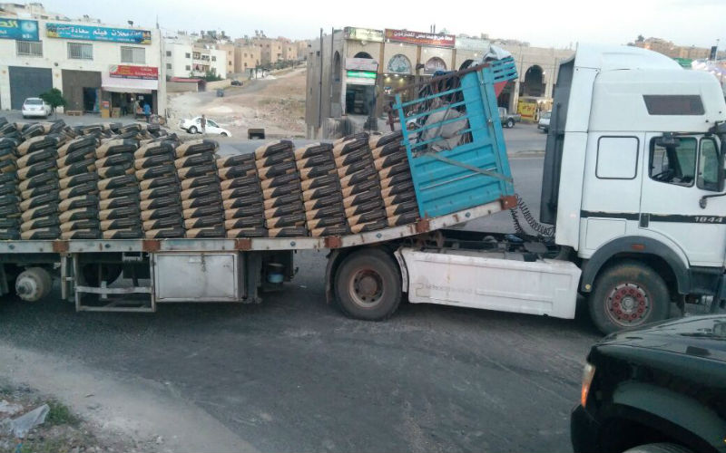 بالصور تريلا محملة بالإسمنت تنفصل عن رأس الشاحنة في عم ان