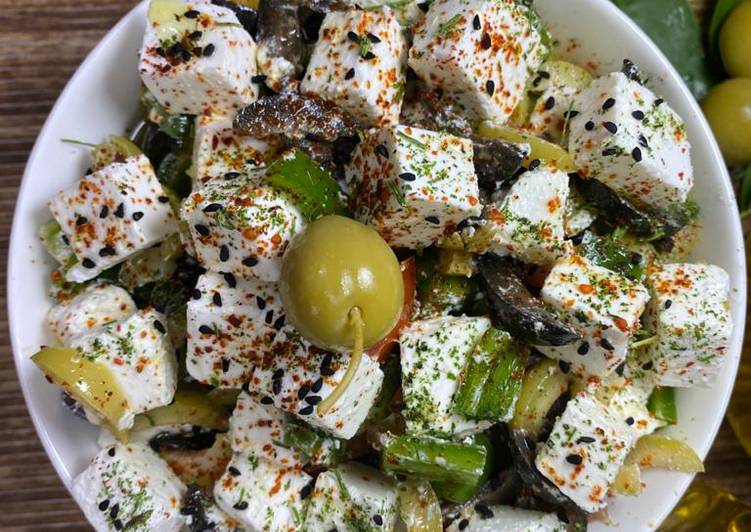 سلطة جبنه بيضاء بالزيتون والفلفل بالصور من الشيف ام دحوم كوكباد