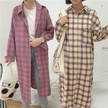صور حقيقية الإناث طويلة عادية قمصان مربعة النقش بالأزرار المرأة لينة شبكة قمصان البلوزات بلوزات فضفاضة للفتيات Dx890 Leather Bag