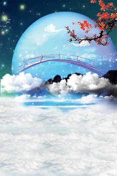 Laeacco حالمة العجائب الشرق نمط غائم القمر ديكور حفلة الطفل المناظر الطبيعية الخلابة صور خلفيات الصور لاستوديو الصور Leather Bag