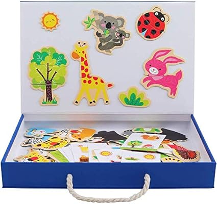 لعبة تعليمية لوح رسم اسود خشبي ومغناطيسي متعدد الاستعمالات للاطفال مع قطع صور حيوانات Amazon Ae