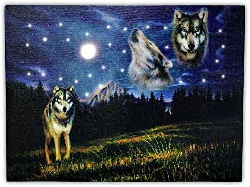 تصميم Banberry Designs Wolf Canvas Wolves Howling At The Moon Led صور مضيئة من الذئاب في سماء الليل 3 ذئاب في الليل مع خلفية الأضواء الشمالية Amazon Ae