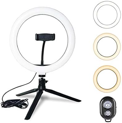 Generic ضوء حلقة Led 10 بوصة مع حامل ثلاثي القوائم 3200k 5500k عكس الضوء مصباح طاولة الكاميرا مصباح 3 أوضاع الضوء و 10 مستوى السطوع ليوتيوب فيديو صور ستوديو لايف ستريم بورتريه ماكياج