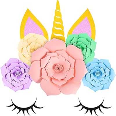 زخارف للحفلات على شكل وحيد القرن من جيتك لتزيين الحائط مع زهور ورقية لامعة كبيرة من القرن مناسبة لحفلات أعياد الميلاد وحفلات الزفاف وحفلات استقبال المولود Amazon Ae