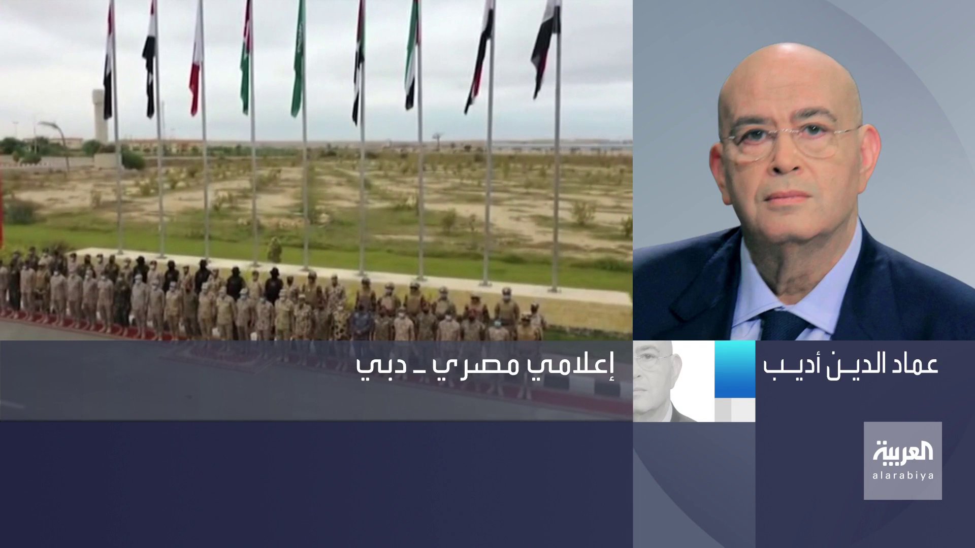 قناة العربية الإعلامي المصري عماد الدين أديب سيف العرب تدريبات عسكرية تحمل رسالة سياسية خاصة أنها تتم قرب الحدود مع ليبيا