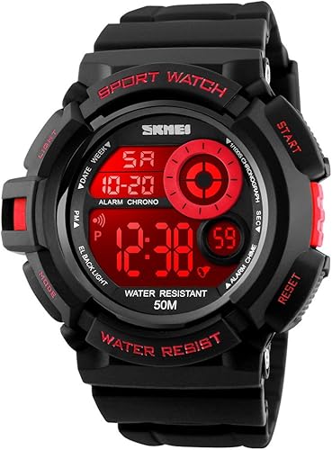ساعة رياضية رقمية للرجال 7 ألوان Led ضوء خارجي ساعات عسكرية كرونوغراف منبه أحمر Amazon Ae