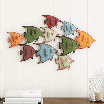 لوحة فنية جدارية من المعدن ثلاثي الأبعاد مرسوم عليها صورة سمكة من Lavish Home School Of Fish ديكور معدني قديم مستوحى من تصميم ساحلي مستوحى من الأشعة تحت سطح الماء لحياة المحيط