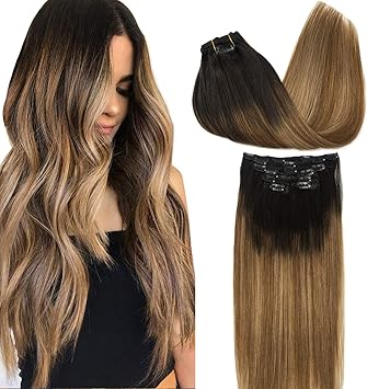 وصلات شعر ريمي بمشبك من شركة جوجو بني غامق 2 باهت إلى اللون 6 بني فاتح 18 أشقر رمادي وصلات شعر بألوان متدرجة 7 قطع 120 جرام 56 سم Amazon Ae