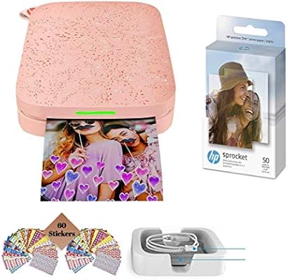 طابعة صور Hp Sprocket إصدار 2nd Edition طباعة على الفور صور وسائل التواصل الاجتماعي على ورق مجعد لزج 2 3 أحمر خدود ورق صور 50 ورقة كابل Usb 60 إطار بحواف لاصقة للزينة Amazon Ae