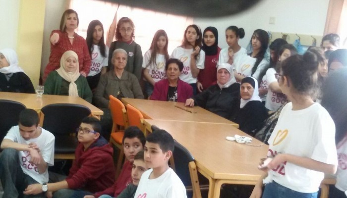 شاشة نت طلاب الصف الثامن في المدرسة الشاملة الرينة في زيارة لنادي المسنين ضمن فعاليات يوم الاعمال الخيرية