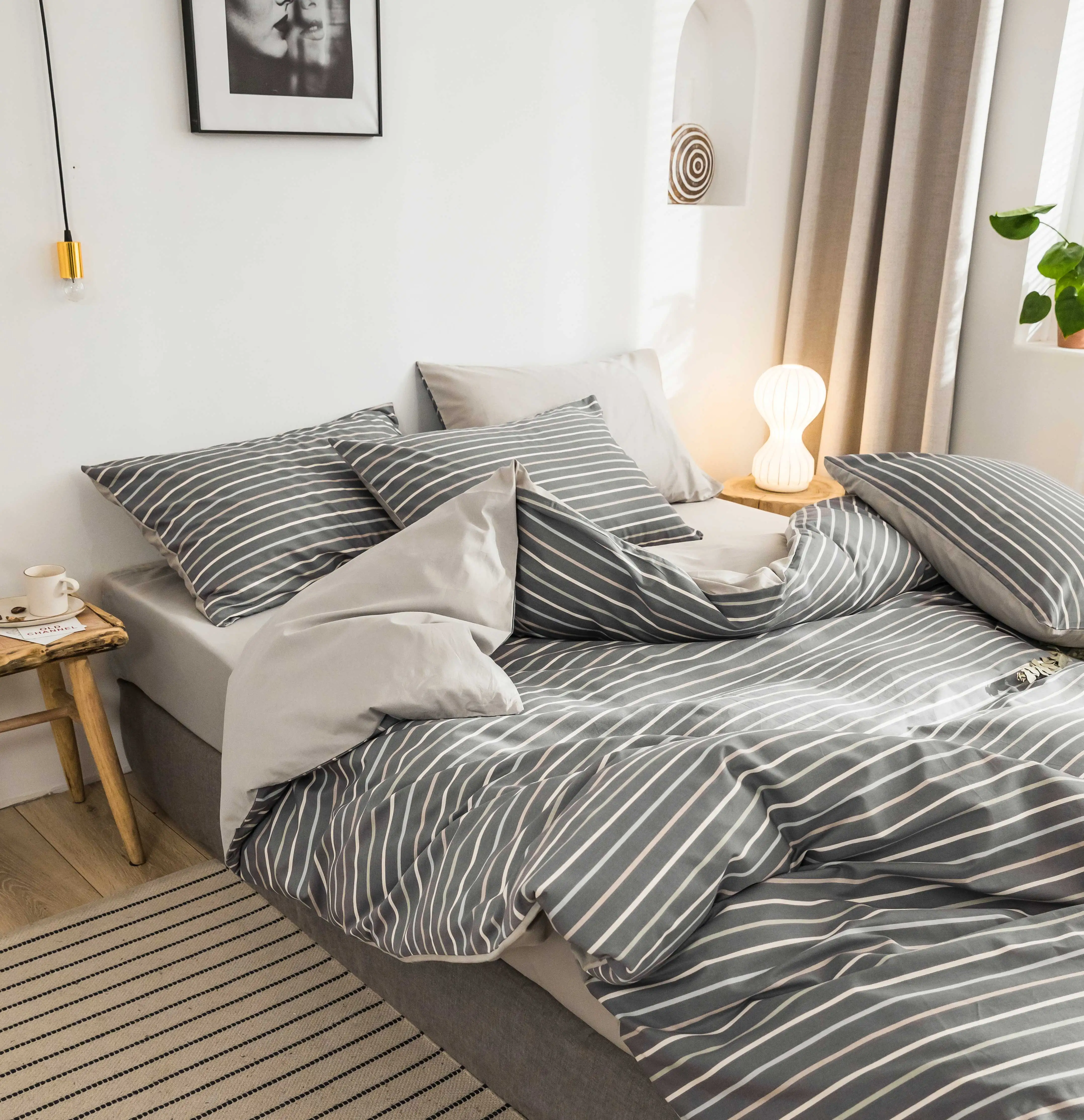 فراش أبيض 25 صورة اختر مجموعة من القطن المخطط مع الدانتيل والتطريز