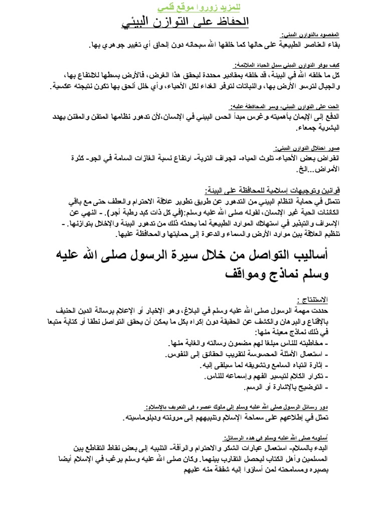 تحميل درس الحفاظ على التوازن البيئي في مادة التربية الإسلامية
