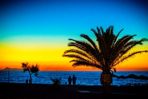 حسن الغروب على الشاطئ سهم التوجيه تصوير الغروب صور الطبيعة على الشاطئ ب البنفسج السماء أيضا شجرات الكف المناظر الطبيعيه شاطئ بحر غروب الشمس صورة الخلفية للتحميل مجانا
