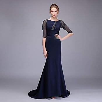 فستان سهرة رسمي نسائي بكم قصير ولون كحلي يناسب الحفلات موديل ميرميد قياس 4 من اس اس واي فاشن Amazon Ae